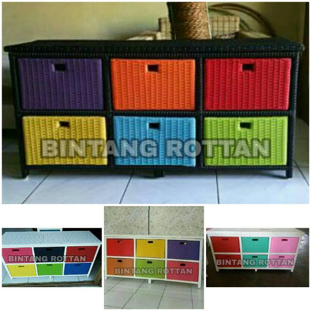 Jual meja lemari laci 6 rotan sintetis Kab Cirebon . Sumber Gambar : www.tokopedia.com